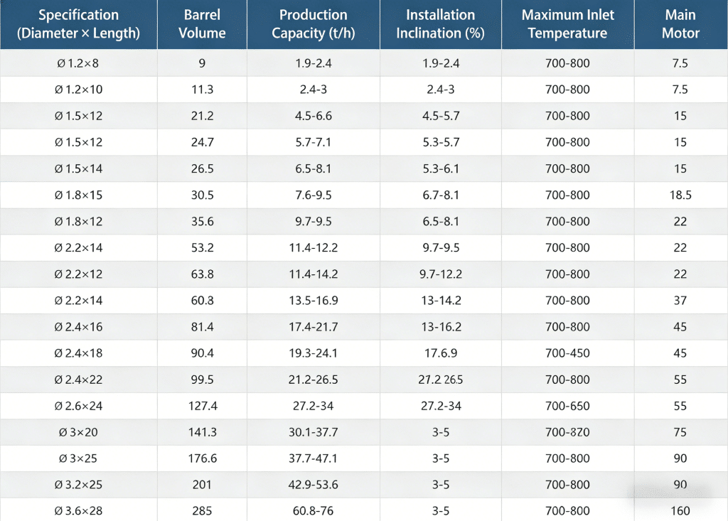 With the direct contact between the hot gas flow and the material, the output can meet the needs of different users from 10 tons to 100 tons per hour under the condition of sufficient heat exchange;